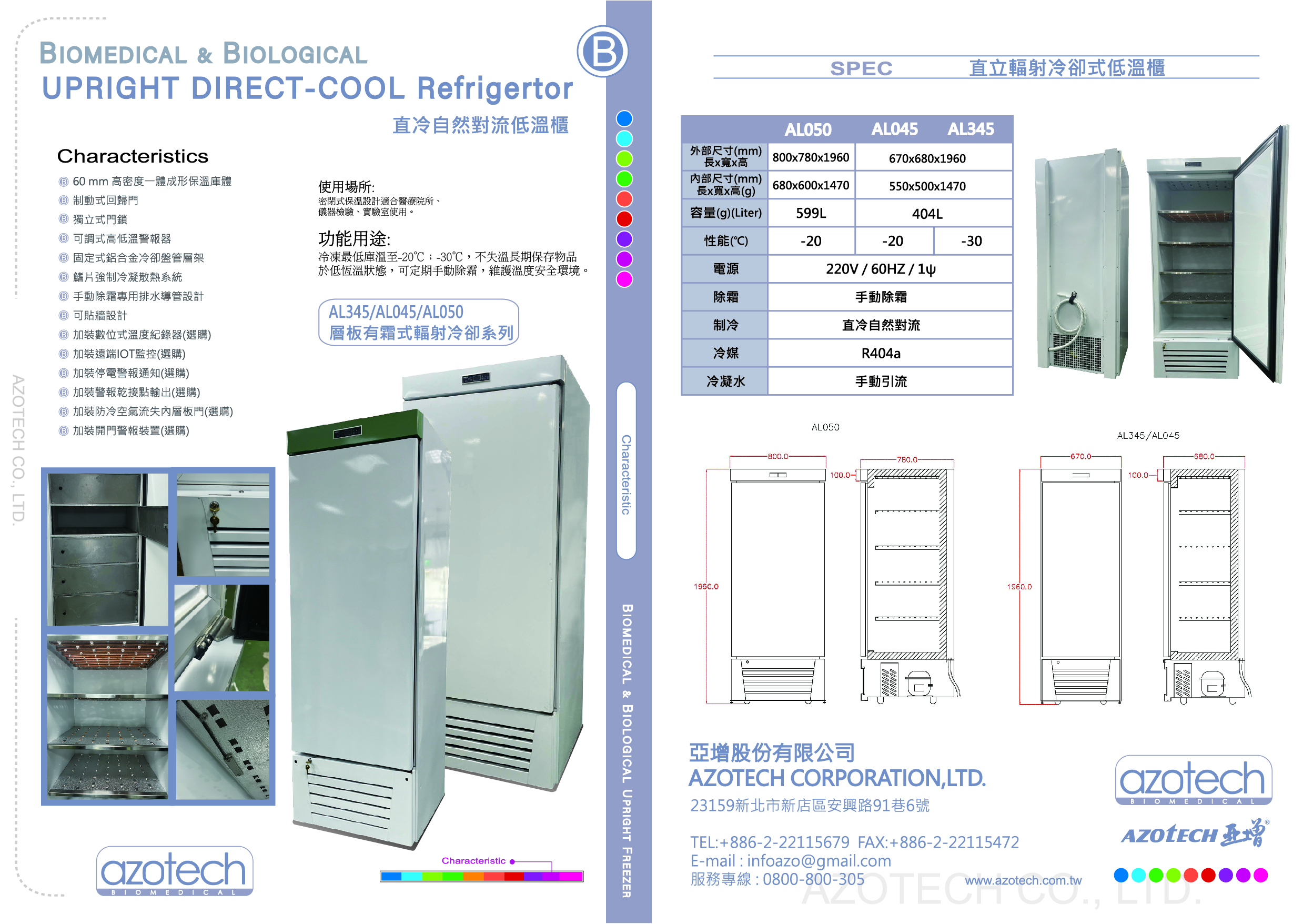 型號MODEL:AL045/AL050/AL345 性能TEMP:-20°C / -30°C 電壓VOLTAGE:220V 尺寸規格SPEC: