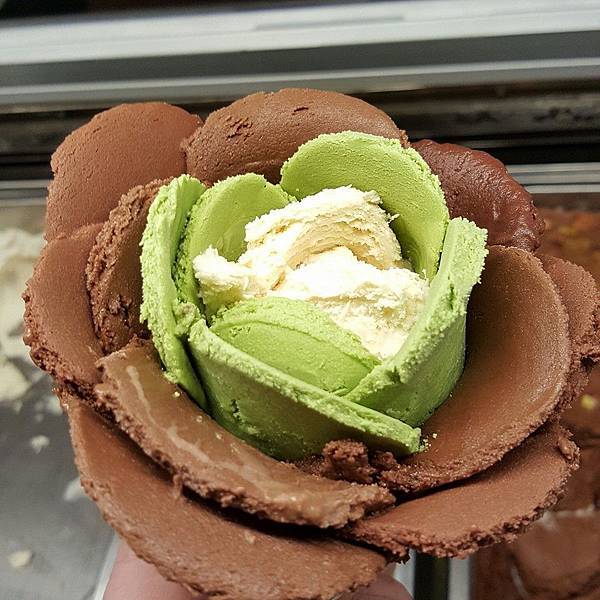 店員會依據你選的口味幫你做成花瓣冰淇淋。